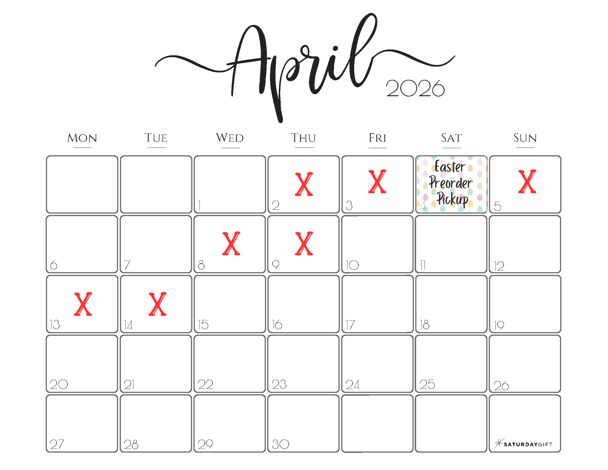 Save the date: Easter preorder pickup Saturday, April 4th.